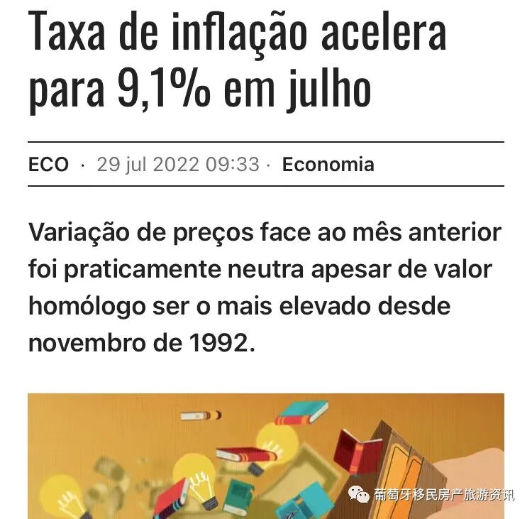 1、 今年7月葡萄牙通胀率达到9.1%,这是自1992年10月后近30年的最高值。