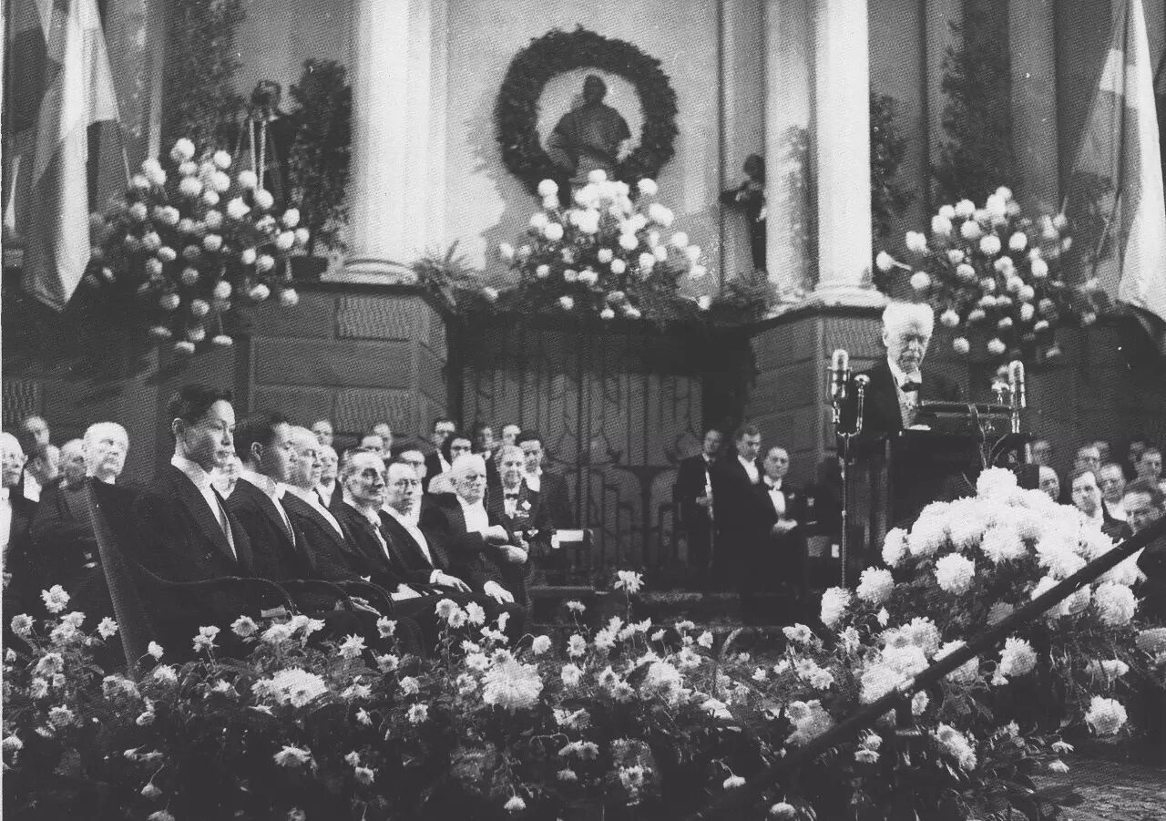 1957年諾貝爾獎頒獎典禮,前排左一為楊振寧。