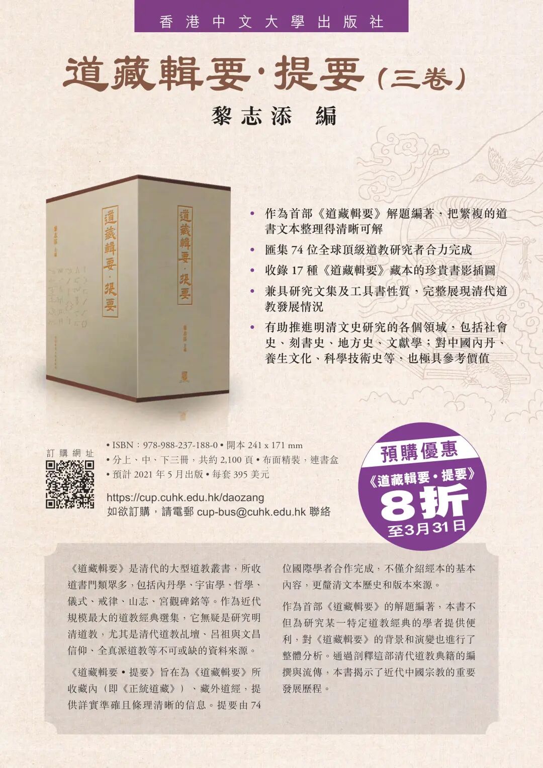 《道藏輯要·提要》預計將於五月面世,現已開放訂購: