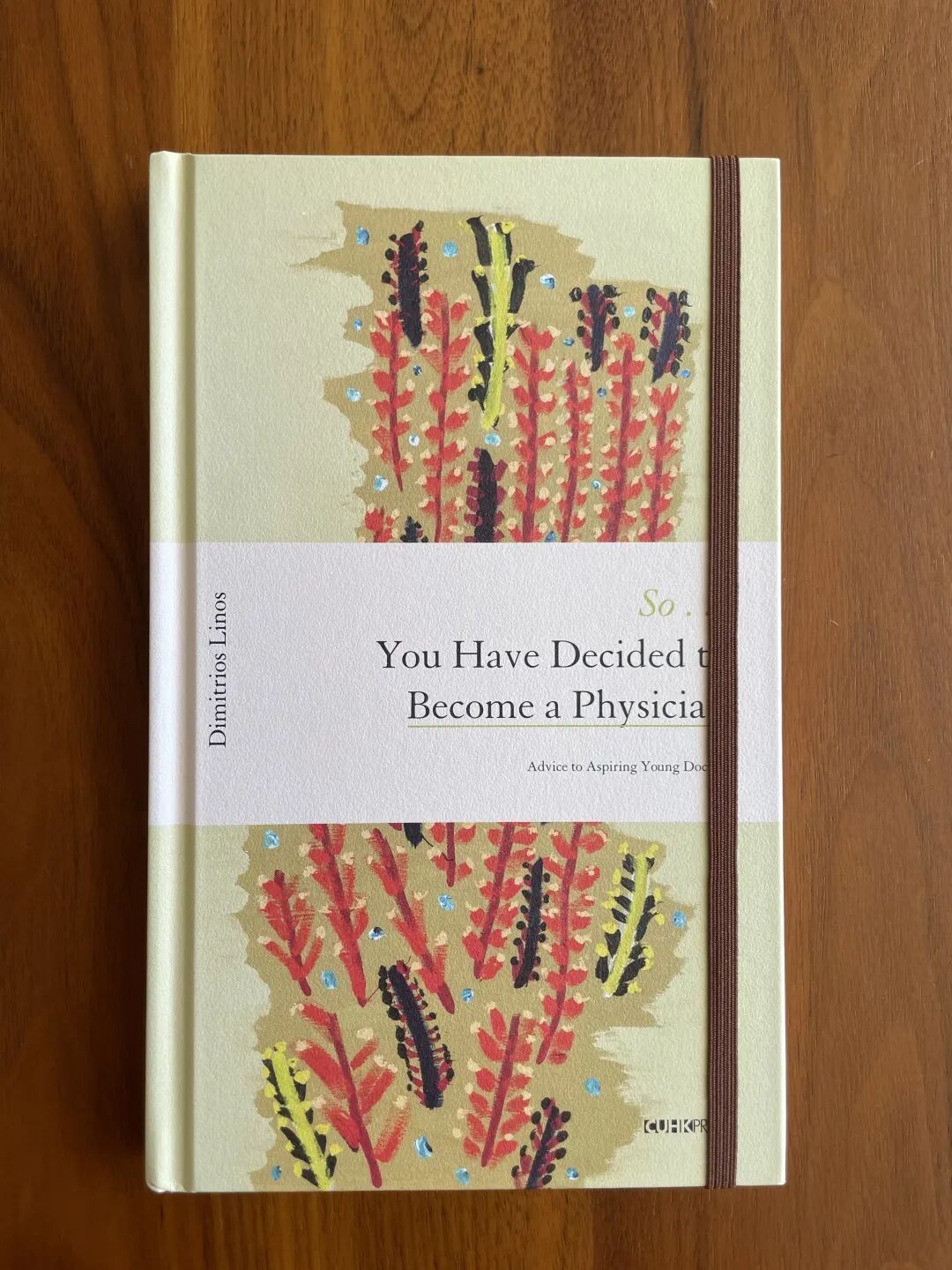 第五本書So...You Have Decided to Become a Physician由Bianco Tsai女士設計。她有意選用了作者的一幅油畫作品作封面,又用特別的淺粉色和輕巧的黃綠色點綴,突顯畫作流露出來的溫柔。作者Dimitrios Linos教授提到,封面油畫中的麥穗象徵他為醫學界播種的渴望,與他寫下這些文字的目的相同——希望培育更多的良醫。他認為封面設計巧妙融合了油畫作品和此書的標題,整體上顯得簡潔利落,也成功傳遞了鼓勵醫生發揮創造力的訊息,這正是他想要表達的重要觀點。