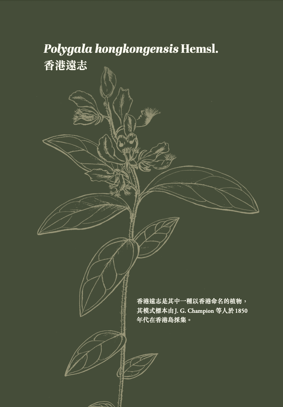 這本書一切的緣起,是傳奇植物學家、曾在中文大學任教多年的胡秀英教授(S. Y. Hu,1909–2012)。胡教授被譽為「植物學活百科全書」、「冬青之母」、「百草婆婆」等,是美國植物委員會首位終身成就獎得主她曾說過:「植物學是一門有趣、有魔力的冷門科學,從事植物學研究的人,第一要有使命感,其次要有健康的身體、堅強的意志及卓絕的人格⋯⋯」