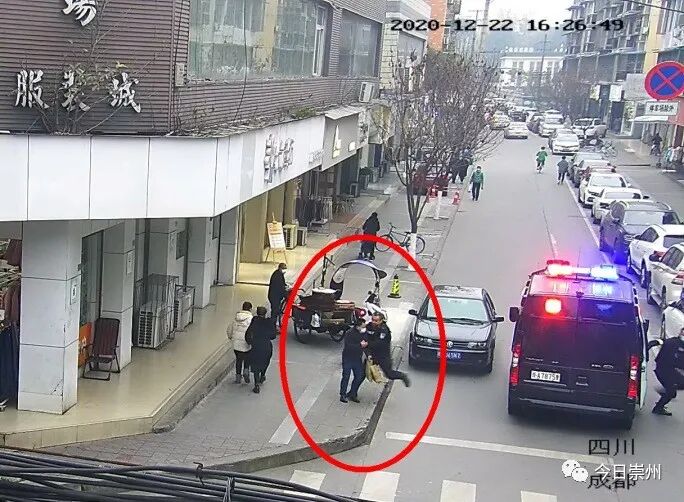 这边根据监控画面进行提示,那边现场民警迅速实施抓捕。12月22日,现场抓捕扒手的一幕发生在崇州街头。