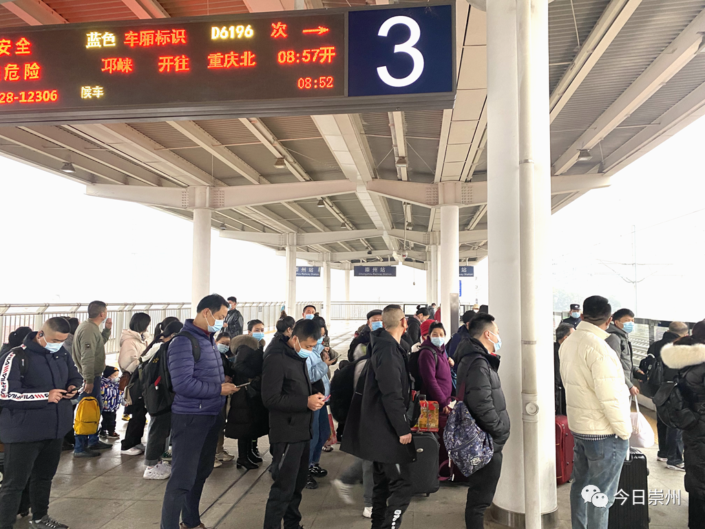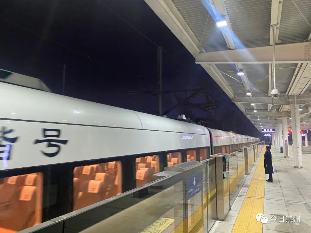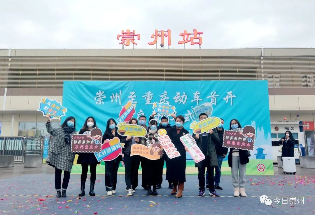 当天19:30 ,重庆至崇州首班直达D6195次动车抵达崇州站。第一批乘坐该车次动车的乘客经过三个小时的车程顺利抵达崇州。