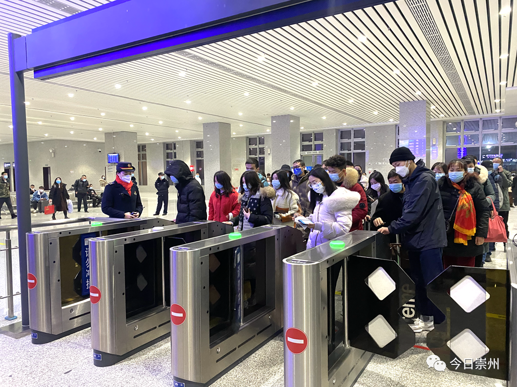 候车室里,乘客们排队检票,通过闸机后进入站台候车。在大家期盼的目光中,流线造型的D6196次动车组缓缓进站,200多名乘客陆续登车,成为了崇州直达重庆动车的首拨“体验者”。