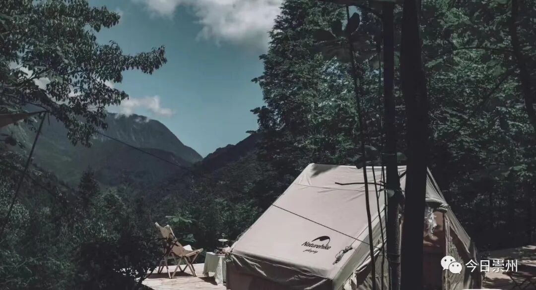 位于鸡冠山琉璃村的露营地虽然藏在大山深处,但他们却主打“精致露营”,帐篷、天幕、户外椅、气垫床、锅炉等户外装备一应俱全,游客只需拎包入住即可享受一次豪华的露营体验。