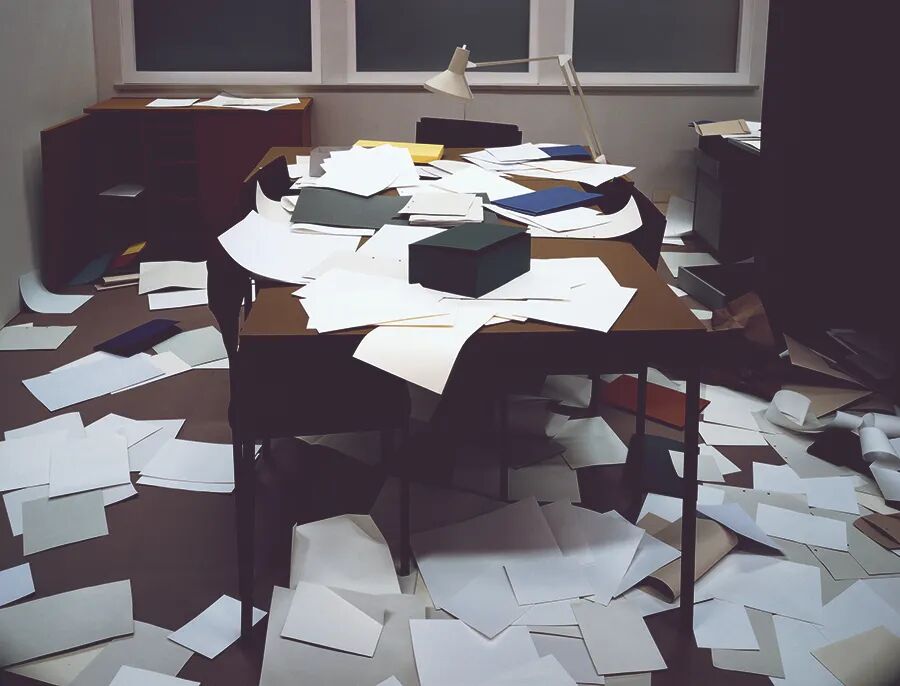 1990年左右,托马斯·迪曼德开始用相机记录自己的模型作品,不久之后他将这种方式发展为一种纯粹的摄影创作,并将模型的内涵与历史中的社会性图像建立关联。他创作于1997年的作品《浴室》构建的场景暗示了1987年战后德国充满争议的“巴舍尔事件”。西德石荷州州长巴舍尔陷入了一场政治丑闻,他辞职后被发现死在了酒店的浴缸里,警方判定为自杀。他穿着衬衣泡在浴缸里的图像见诸报端,不免让人联想起新古典主义画家雅克·路易·大卫特(Jacques-Louis David)18世纪末的名作《马拉之死》。迪曼德用充满色彩的纸张还原了现场,但所有混乱与暴力痕迹都被移除了,作品画面变得冷静、整洁、克制,这种风格使得《浴室》摆脱了新闻叙事,从而产生了一种多义的表达。类似的方法被运用于迪曼德作品的整体脉络之中。他所关注的焦点除了德国本身的历史之外,还包括了当时对世界产生了深刻影响的各种战争、灾难、社会生活等一系列事件。但由于原图像中的指示性信息被移除,因此,作品背后的那个充满启示、思考与反讽的背景事件并不是作品想要展现的东西,但观众仍然可以在图像所产生的诱惑中自行探索。更为重要的是,这一方法为迪曼德的作品注入了隐喻与批判的特质。例如,1995年作品《办公室》中,遍地散落的文件象征着柏林墙倒塌之后民众急于寻找自己档案的混乱场面,但迪曼德作品中的文件只是白纸,对个人身份与记忆的抹除在这里转化为了艺术家对于现实问题的回应。