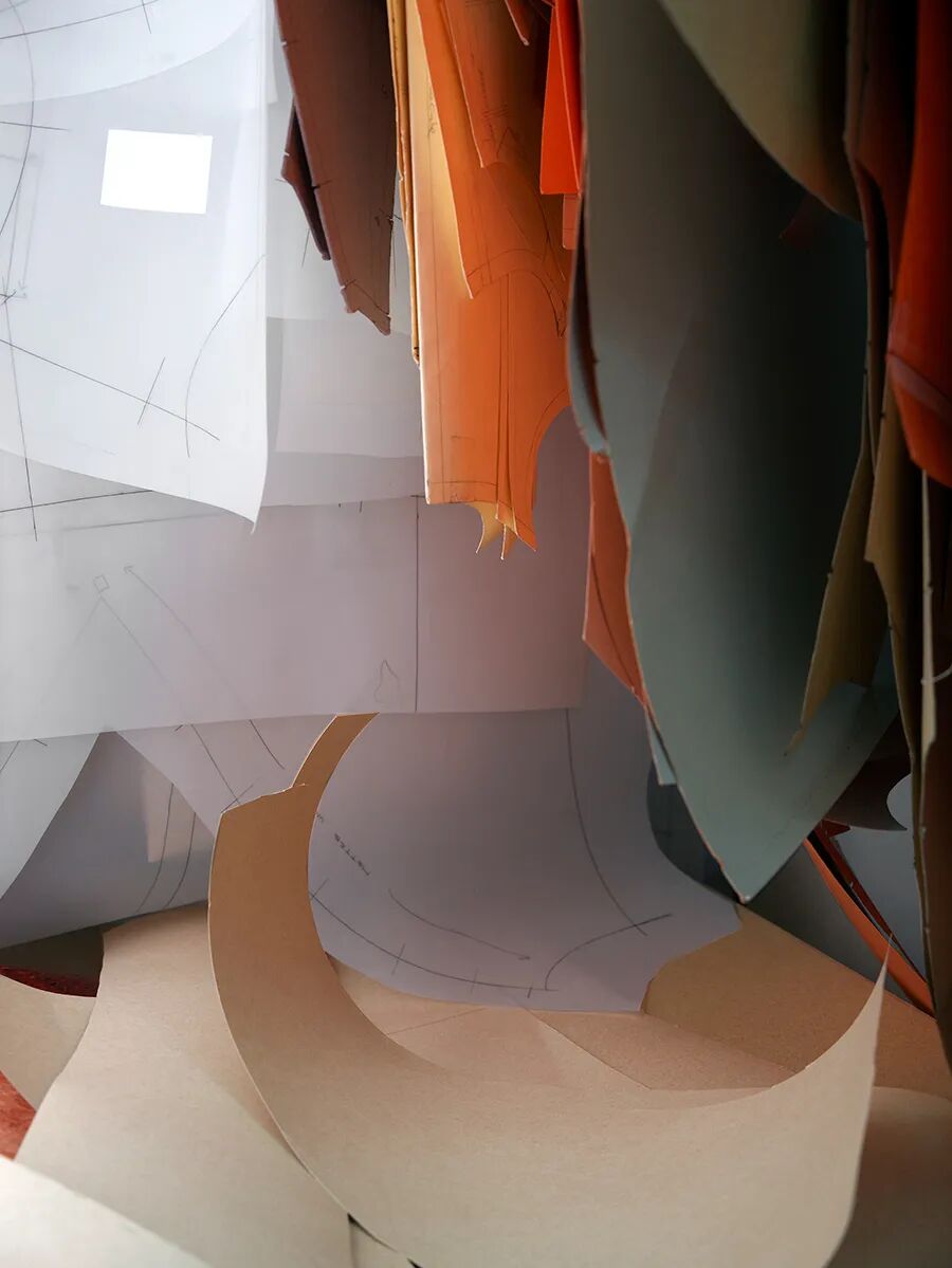无论何时何地,对任何人来说,纸张都非常实用。这就产生了一个可供我参考的普遍经验。我相信,今天,你的手里就拿着纸。你们知道它的材质,不像钢筋混凝土,纸主要是临时使用。它非常美丽、清脆且易损,这恰好符合我的创作,它使我作品中的元素变得平整而统一。好似作品中的图像,纸呈现了众所周知的现场,给人一种似乎是在哪儿见过的感觉。