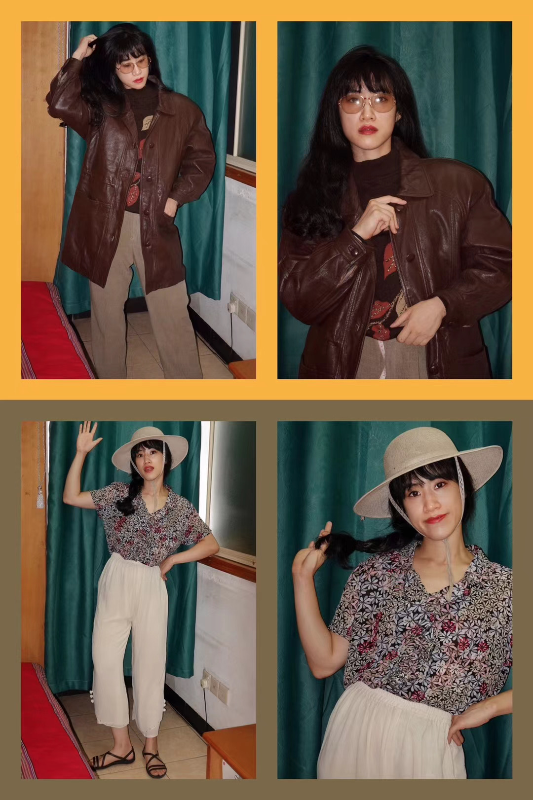 去年十月,一直热衷复古穿搭的 Helene 在朋友圈发布了一组照片。她为自己搭配了十二套复古装扮,圆顶宽檐帽、针织披肩、酒红毛呢帽、藤编腰带、貂围巾......并附上了文案“这些都曾属于我的外婆”。她的外婆去世了,留下了很多衣物并险遭丢弃。Helene 将这堆衣物拦截下来,再做挑选、整理、重新搭配,对于她来说,对旧物的偏好一部分是出自于对情感和回忆的保存。社交网络让我们更容易地去认识、联系自己的朋友,更方便地建立一段关系,但反而失去了人与人之间交往中必要的等待与难得的真诚。人的记忆总是包括着很多,不仅仅是那些具体的内容,那些情绪、场景附着着各种信息,包括空间与气味、表情与肢体、颜色与花纹,甚至包括留存过的喜怒哀乐。我们怀念过去的情感,也期待能从现在开始勇敢地走出去。![]()