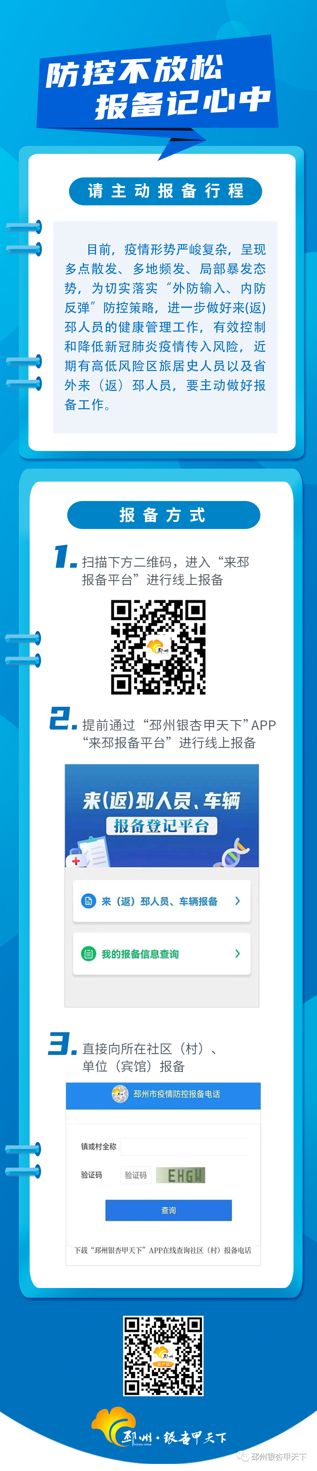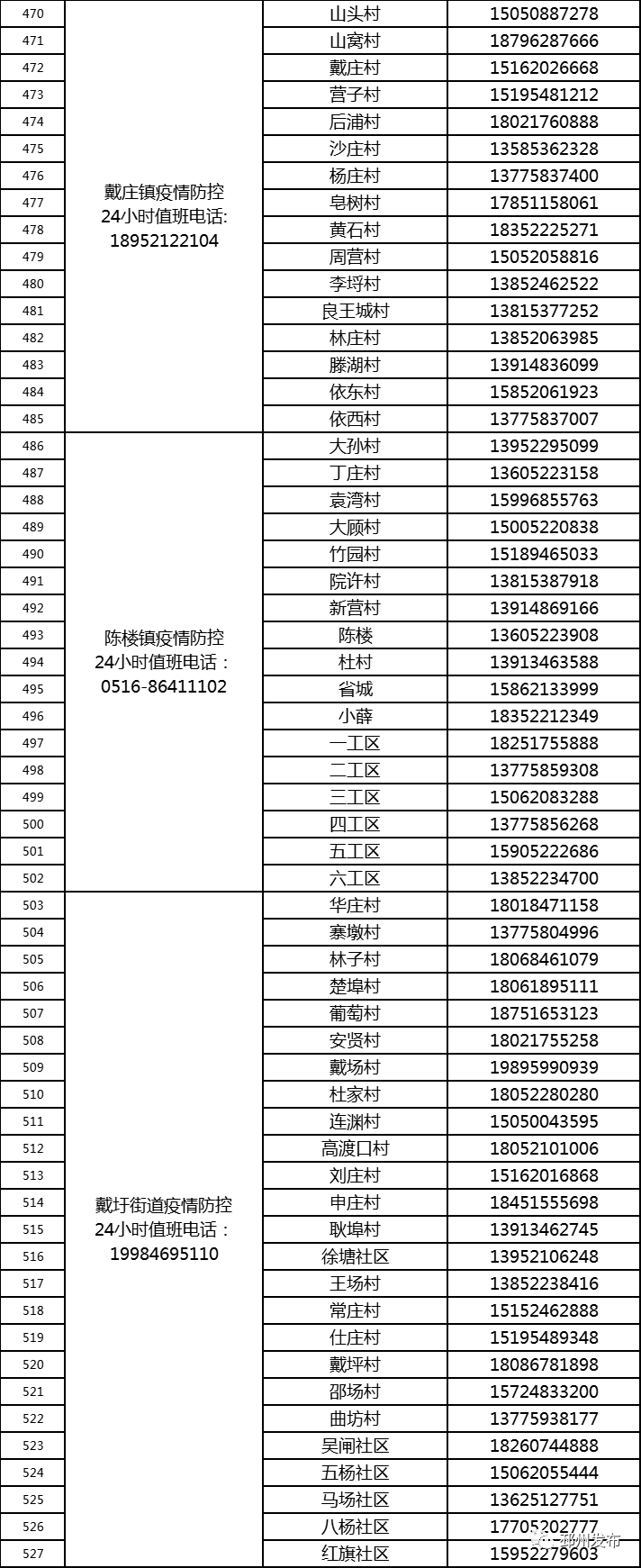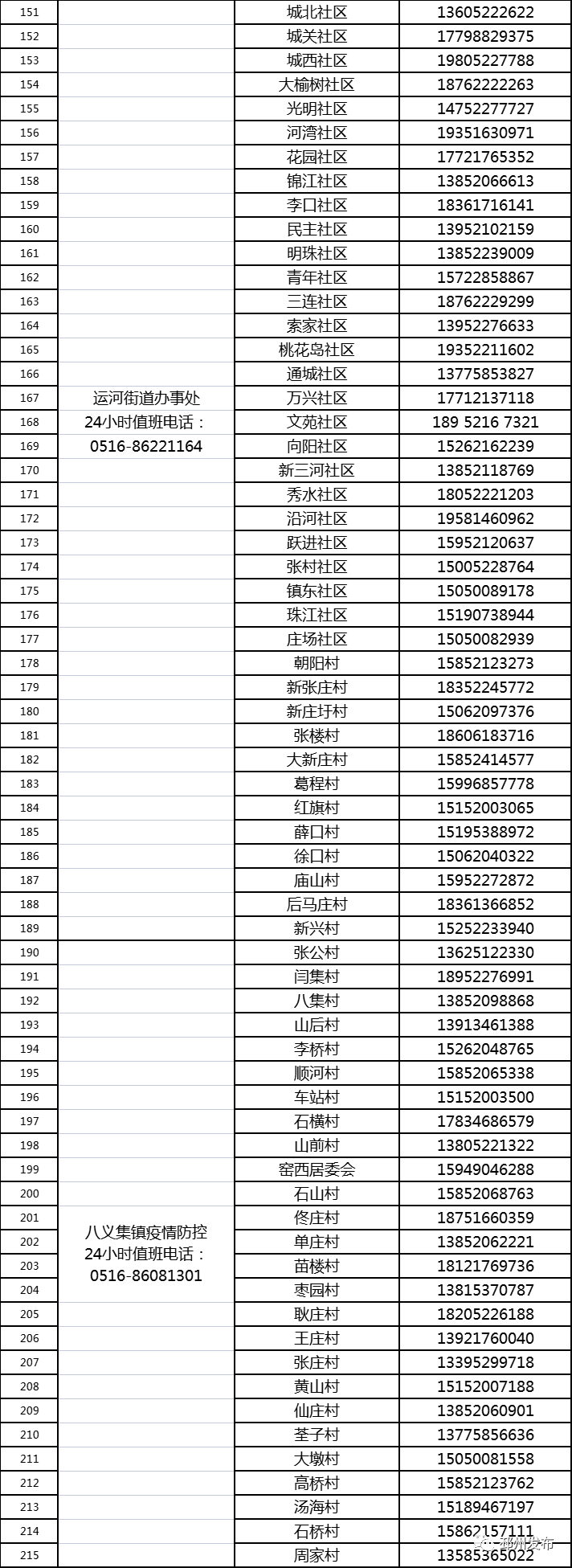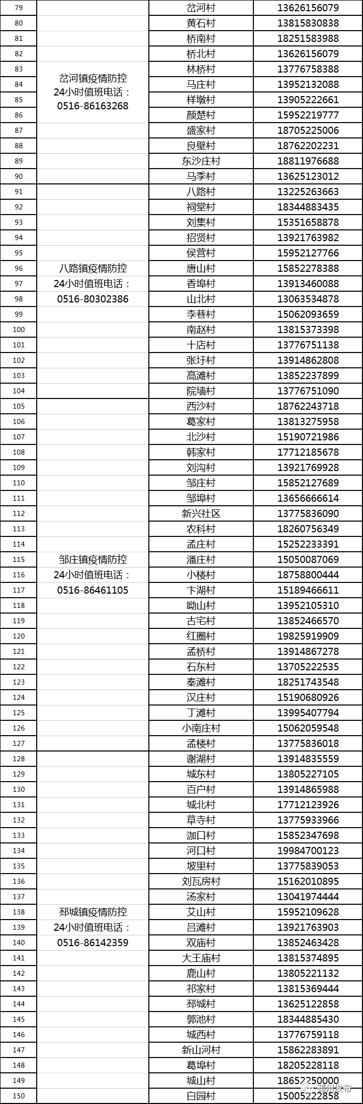 为进一步畅通来(返)邳人员报备渠道,更好落实健康管理措施,降低疫情传播风险,现将邳州市各镇(街道)、村(社区)疫情防控报备电话向社会公布。请来(返)邳人员主动向目的地所在社区、村或入住的宾馆、酒店报备个人行程信息,并配合落实健康管理措施。