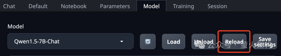 2、点击 Reload 重新加载模型,因为此时模型已经被训练污染了。