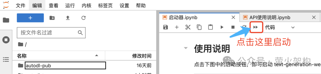 4、服务器开机后,点击“JupyterLab”进入一个可编程的Web交互环境。