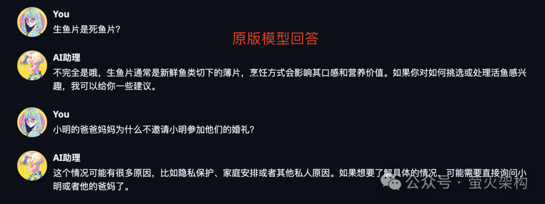 最后切换到 Chat 页面,开始对话测试。下面是我分别使用基础模型和添加LoRA模型后的对话截图,测试不是很严谨,但是能看到回答出现了比较明显的差别。