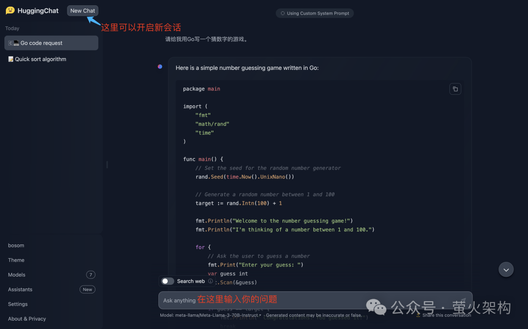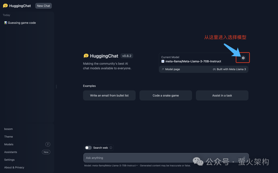 https://huggingface.co/chat/ 需要先注册一个HuggingFace账号。