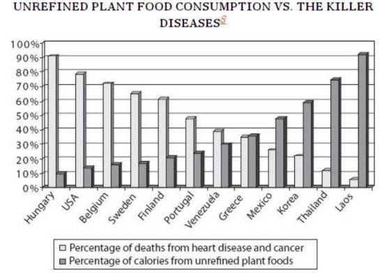 素食群体中仍有癌症,心血管疾病,糖尿病,三高和肥胖存在,虽然其比例远远小于普通人群。世界卫生组织给出的一张图给出了答案,天然全蔬食与癌症和心血管疾病死亡率的关联,天然全蔬食越多,死亡率越低,精炼食物越多,死亡率愈高。