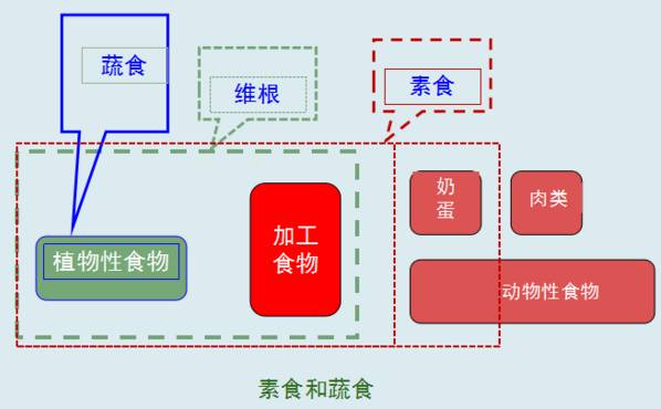 素食概念的混乱,让有些人不太爽。英国唐纳德华生先生1944年创造了一个新词vegan,就是vegetarian的前3个字母veg和最后2个字母an。vegan的定义是指摒弃一切动物性产品,包括肉,鱼,奶,蛋,包括蜂蜜及其衍生品。vegan的中文有几种翻译,严格素食或纯素。余博士在创立vegan hut 时2008年首次使用了“维根“,取名为维根小屋(后改为维根蔬谷)。维根有维护根本的含义,也从侧面凸显维根的健康环保价值。理由主要有2个,vegan不限于食物,在衣食住行上都要规避动物性的成分;其次所谓严格,纯净的说法,暗示了道德上的优越感,对其他素食者并不太尊重。维根还是沿用了素食的否定式定义。