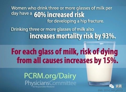 PCRM 数据显示女性每天喝3杯以上牛奶增加60%髋骨折几率