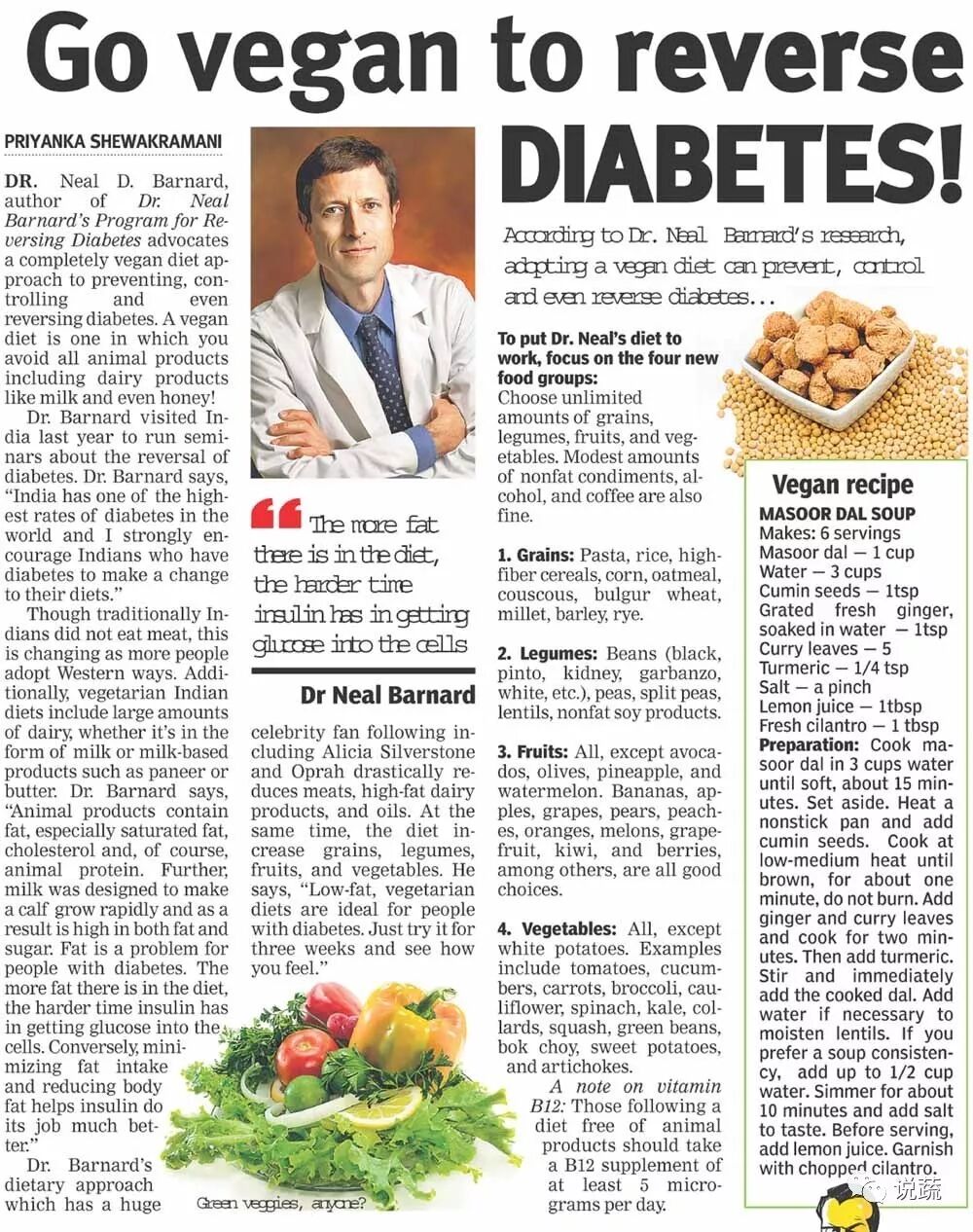 巴纳德医生推荐维根饮食以逆转糖尿病
