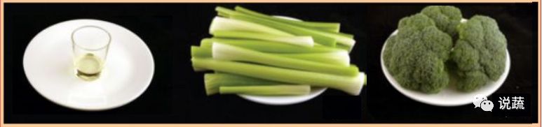 200千卡的食材案例,油,西蓝花和芹菜的体积比较
