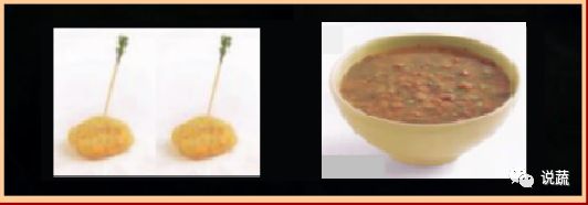 再来看看下面几张图。2块鸡块和300ml 的小扁豆蔬菜汤,都能提供100千卡的热量。2鸡块是吃不饱的,而300ml 的小扁豆汤让人基本饱腹。