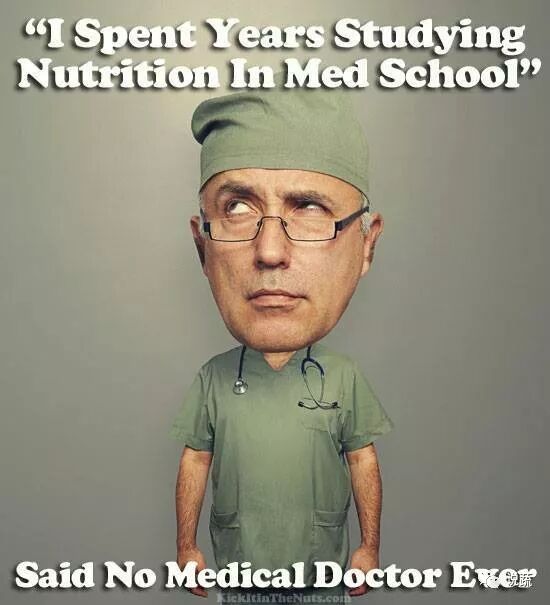 很遗憾,事实并非如此。据最新一项全国调查,仅有25%的医学院单独开设营养学课程。而30年前,这一比例还是37%。公众多认为,医生是他们获取 营养学知识的可靠来源,而医学院的毕业生每7人中就有6人认为医生的营养学 知识匮乏,不足以给病人提供饮食建议。另有研究表明,一些普通人似乎都比 医生了解更多基本的营养学知识,因而得出结论:医生本应比病人更了解营养学,而实际情况却并非如此。