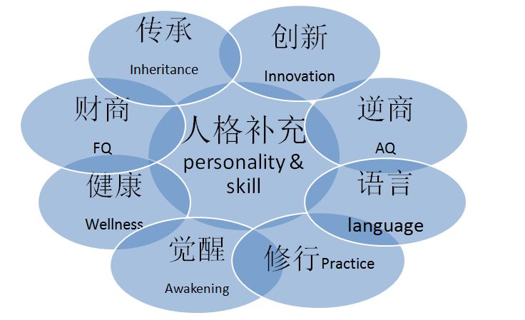 点评:总结了8个点,部分作为基础人格的补充,部分是需要从小接触的技能。健康解决人一生的健康问题,语言问题极为实用,举国提高英文能力,是中国国际化的重要一步。财商是商业思维的基础,逆商是人格完善中的重要特征,抗压能力是承担更大责任的保证。传承是学习的重要资源,而创新智慧会明显提高整个国民素质,也是完成中华民族伟大复兴的文化基础。觉醒代表未来社会的发展趋势,而修行会解决人生的终极价值。