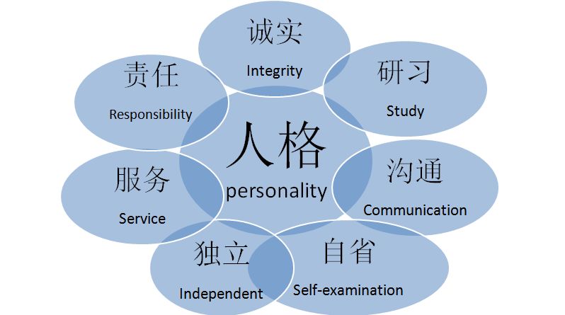 点评:诚实解决做人的基础,责任解决了做事的基础。研习解决个人能力提高,沟通解决人与人的协作。自省解决人与自我的问题,服务解决了人生的快乐源泉。而独立是基础人格形成的重要目标。独立不是隔离,而是更好地扮演人生的角色,也同时完成人生的修炼。