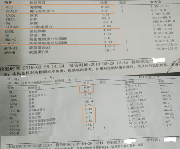 Y先生和Z女士系夫妻,Y先生55岁。Y体重从74.9降到72.6公斤,下降2.3公斤;总胆固醇从5.07降到4.29,下降0.78,低密度脂蛋白LDL 从3.73降到2.94,下降0.79。