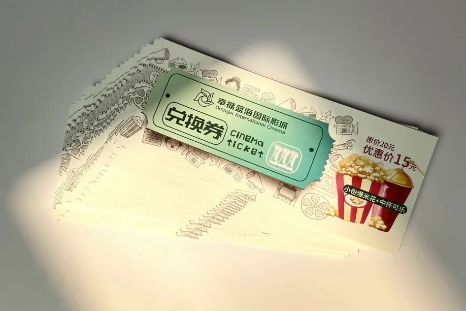珠海扬名广场“幸福蓝海国际影城”电影兑换券,价值30元共100张。