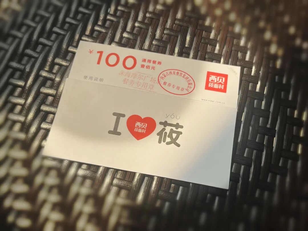 摩尔广场“西贝莜面村”代金券,价值100元共30张。