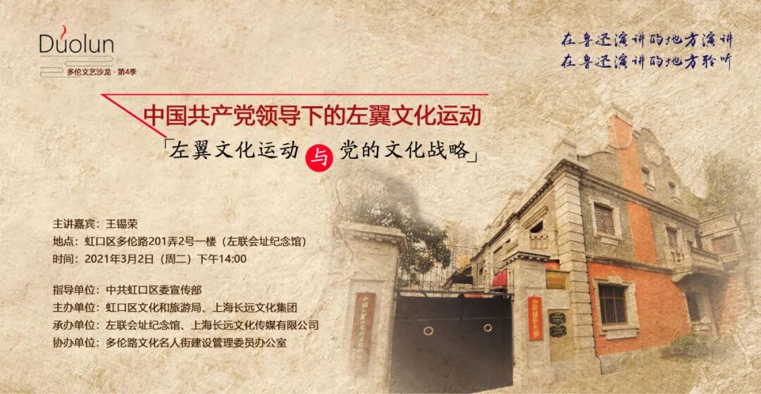 左翼文化运动,在近十年的发展历程中,为中国的人民解放、社会发展、文明进步和文化建设,写下了中国现代文学艺术的辉煌新篇章。这场运动是中国共产党引领先进文化发展的一次重大实践,也是中国革命取得最终胜利的重要保证。今年是中国共产党建党100周年,新一季多伦文艺沙龙将聚焦“中国共产党领导下的左翼文化运动”这一主题,邀请全国左翼文化研究专家学者,从不同维度探讨这场影响深远的文化运动。