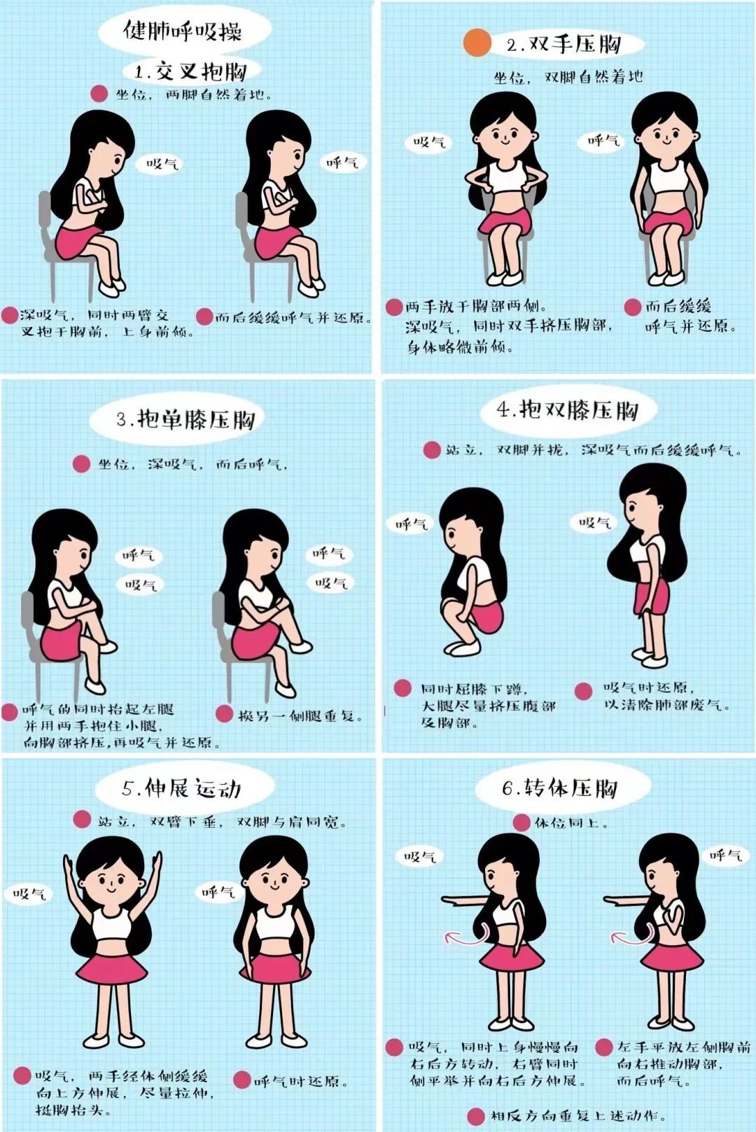 健肺呼吸操图示。(据 新华网)