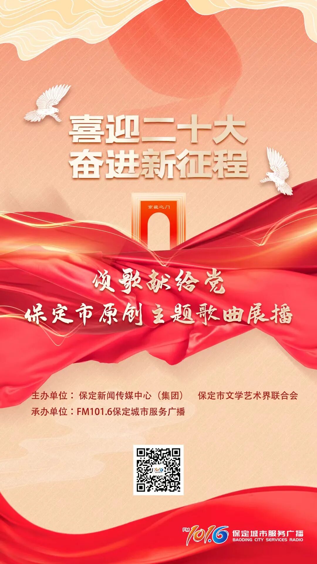 不忘初心跟党走,同心共筑中国梦。日前,由保定新闻传媒中心(集团)、保定市文学艺术界联合会联合主办,FM101.6保定城市服务广播承办的 “喜迎二十大 奋进新征程”保定市原创主题歌曲征集活动进入歌曲展播阶段,10余首经过层层评审脱颖而出的原创歌曲将通过广播、新媒体平台进行展播。