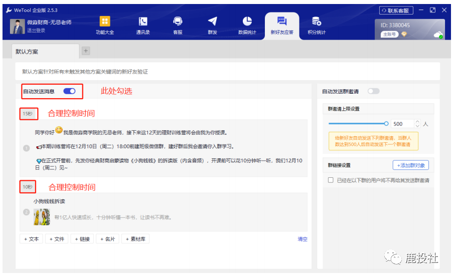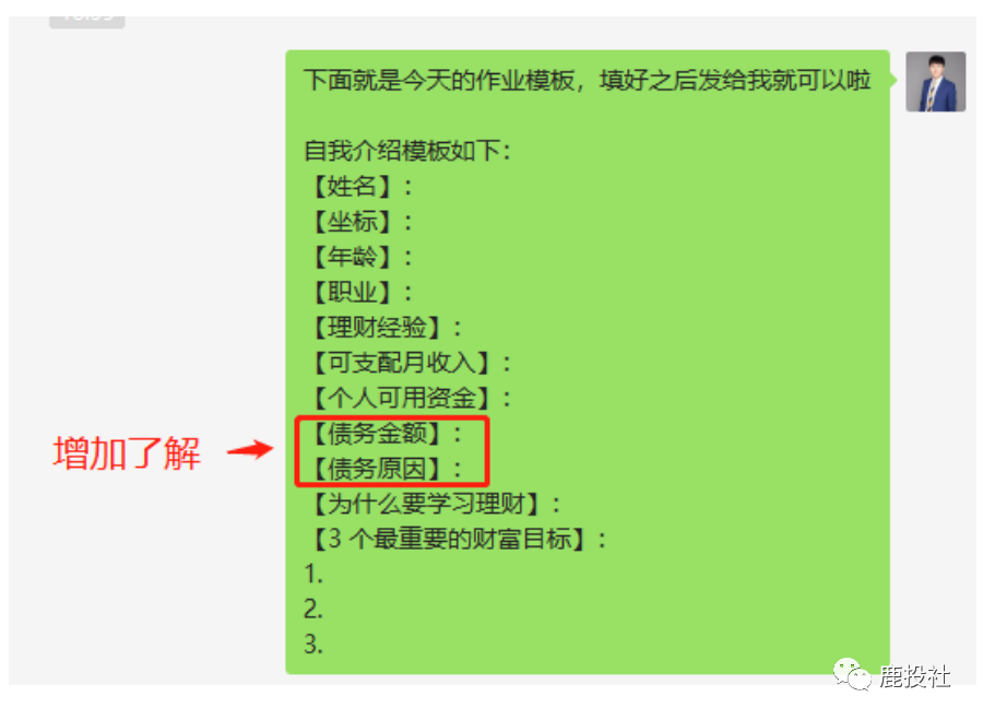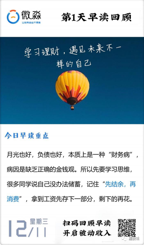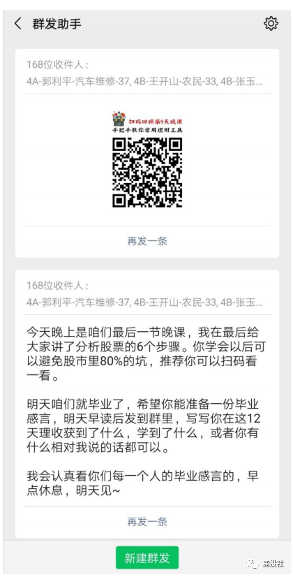 2)群发:财务自由纲领二维码+话术,进一步扩大实践课公开象限,塑造价值。