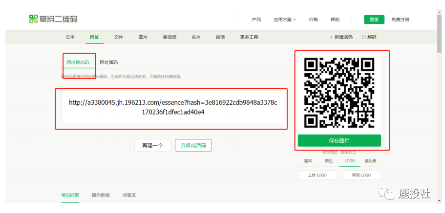 操作之后会得到一个链接,然后打开网站:草料二维码