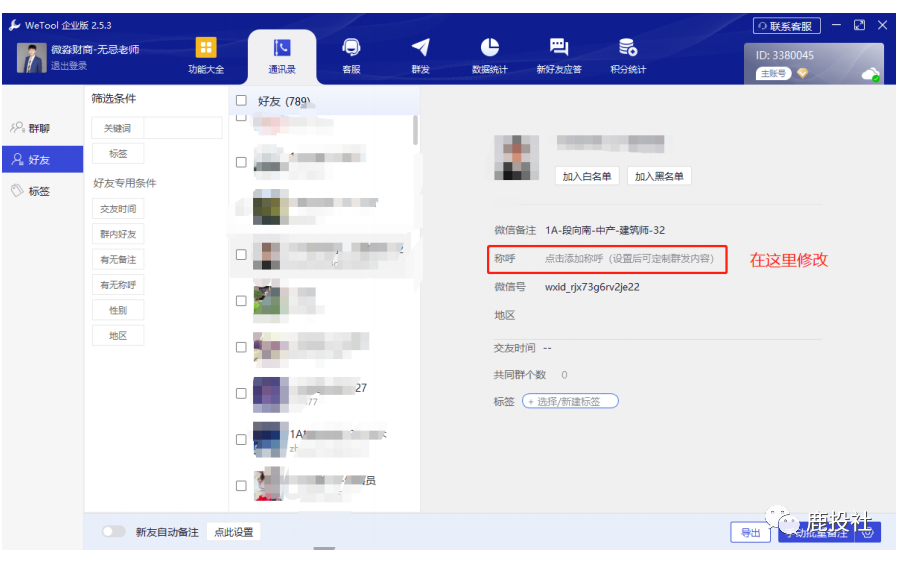 修改 wetool 昵称是为了方便后续通过群发个性化定制催作业,如果不用工具手动也可以催作业,只是选用。具体的适用场景后面会继续详细演示。