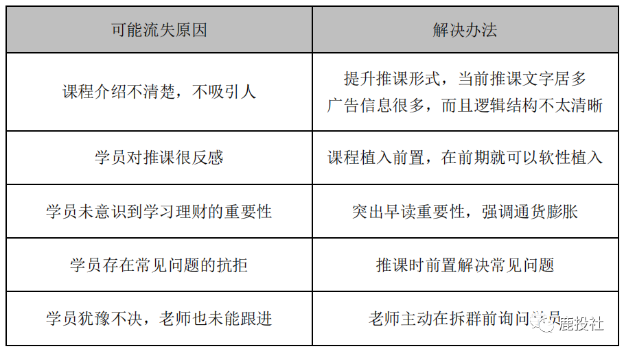 带着名字回复作业、踢单,有效提升回复率,将漏斗从听课的人过滤到让他们开始咨询报课。然后解决疑虑、要求成交,进入循环。