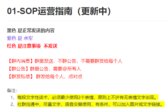 | 5 | 大家是不是托,太贵了 | 1、不要硬刚学员 2、侧面引导,牵着学员走不要跟着学员的节奏走 3、私信安抚,如不能安抚,视情况踢之 4、如发生炸群,学习号不要怼学员,站在客观公正的角度曲线救群 4、截图尽量用最新的,保证截图的真实姓。不要因为退课着急自己炸自己 | 每个爱学习的同学都是老师的托。 "(群里回复)同学们都是真实的学员,后面大概率你们都是一个实践班班级,这么多天学习,课程价值如何,同学们都心里有数。学费贵不贵,是价值决定的。好的生活品质也不便宜,从根本提高你自己赚钱理财的能力,才会帮助你获得和过上你想要的! (私信)对于课程的价格,今天晚上付款的同学很多,部分同学还是通过花呗或者白条信用卡付的款!有些同学确实经过这么多天小白营收获很大,想进行更系统的学习!他们会根据自己的需求进行自己目标调整,你如果觉得大家是托的话上进阶班的课,看看和你一起上课的人,付学费的人是不是咱们这一期的" | |||
