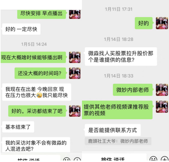 央视第二位记者同志沟通微淼涉嫌非法荐股涉嫌违法犯罪的部分沟通信息公开: