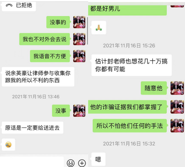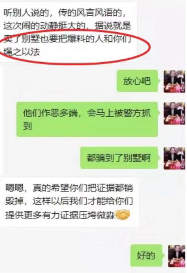 其实微淼在内部扬言威胁和恐吓一般就两个目的,第一让员工害怕不敢爆料了,第二也想真的动用了关系而最后对我方造成了伤害而震慑到员工表示微淼说到做到了!下面还有一个老师爆料卖了别墅也要让我方和爆料的人弄进去!现在诈骗分子都如此嚣张,也是前所未见,为啥公安部要扫黑除恶就是这个原因吧!同时卖了别墅和弄进去我们有啥关系?这个通过贿赂或是其他黑手就可以完成这个目标?
