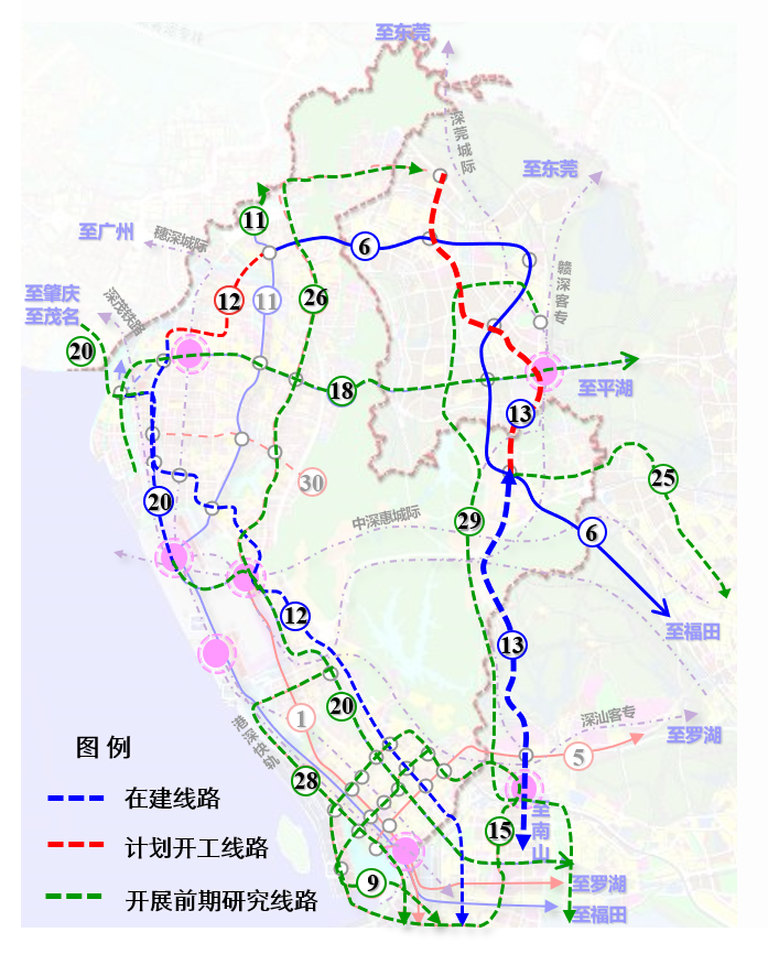 积极开展25号线、26号线、28号线、20号线衔接东莞R2线、11号线衔接东莞R3线等5条线路的前期研究。