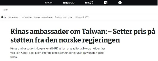 8月12日,易先良大使就台湾问题接受挪威国家电视台时政专栏记者菲力蒲·乌尔文的专访,其中一个关键问题就是“如果美国宣称支持“台湾独立”,中方是否不惜同美国一战?”