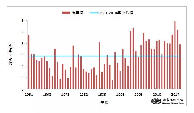 全国平均高温日数:偏多