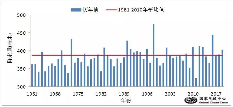 今年以来,全国平均降水量为402.6毫米,较常年同期(386.7毫米)偏多4.1%,比去年同期(389.3毫米)偏多3.4%。
