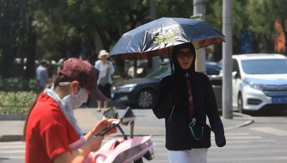 7月4日,北京高温黄色预警已连发四天,局地气温高达40℃。图为北京街头,一位女士紧裹全身行走在烈日下。图/中新网