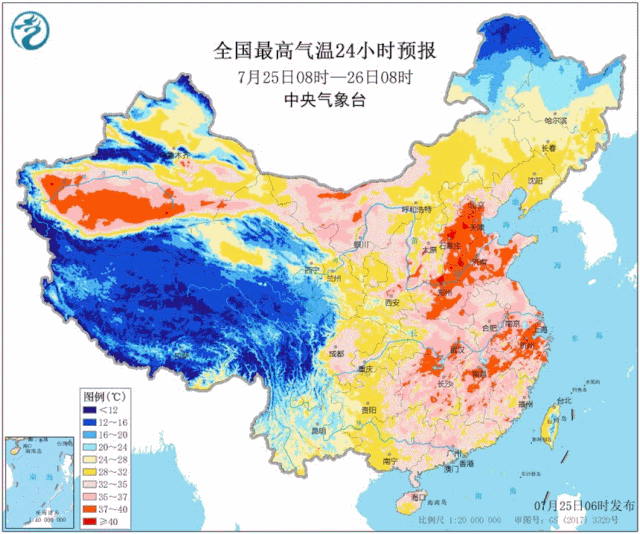 全国最高气温预报 图片来源:中央气象台