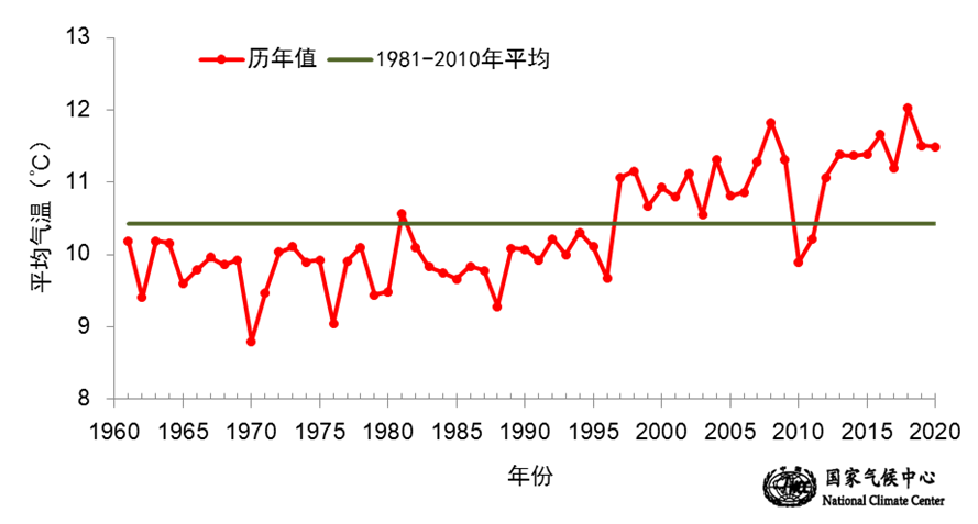 图1 1961-2020年春季全国平均气温历年变化(℃)