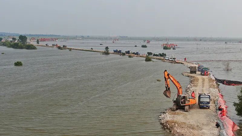 8月5日,辽宁盘锦市绕阳河溃口险情处置现场,抢修封堵现场
