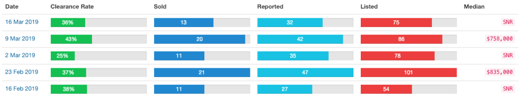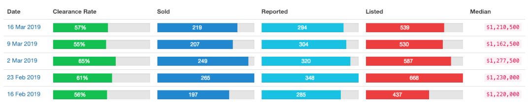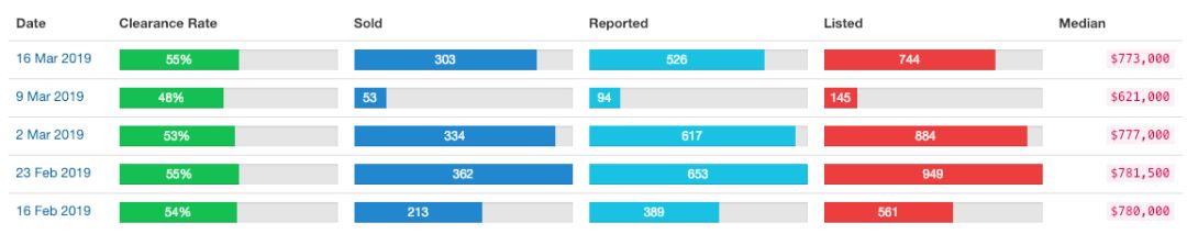 根据初步结果显示,上周全国清空率为56.1%,高于前一周47.8%的最终清空率。不过从CoreLogic的最终清空率数据来看,最终清空率会比初步数据低几个百分点。而一年前的同期清空率为66%。