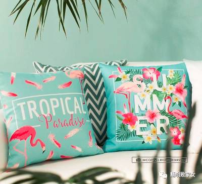 我觉得这种火烈鸟图案的也很适合放在阳台上,一张躺椅,一杯饮料,自己给自己做一个“度假区”。