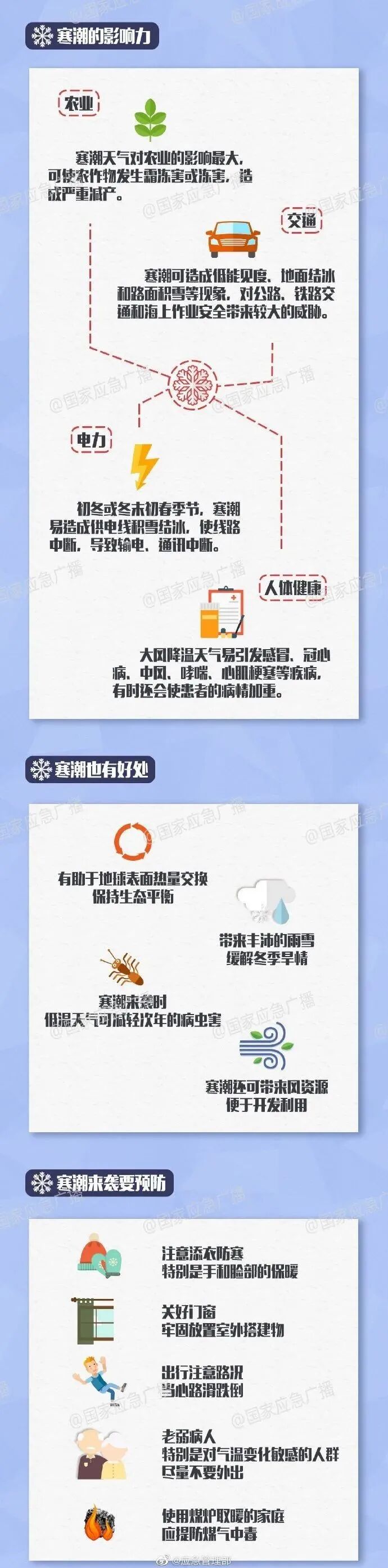 防御指南:政府及有关部门按照职责做好防寒潮准备工作;注意添衣保暖;做好防风准备工作。